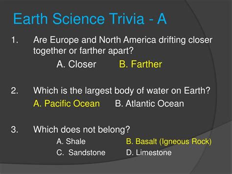 Read Online Earth Science Trivia With Answer Epub